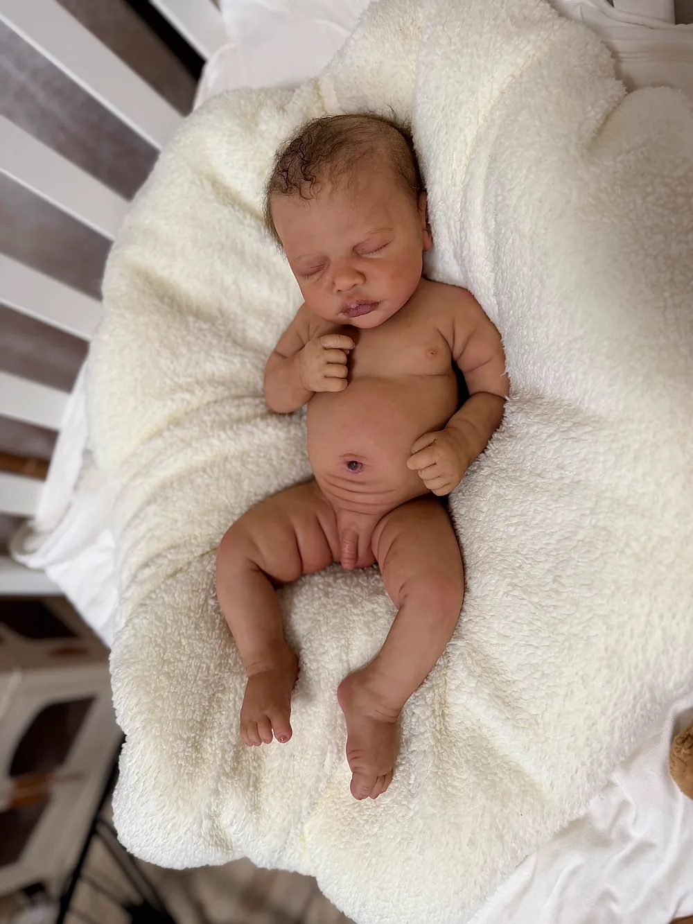 Neeley was sculpted by Denae Culbreth and Kathy Romero Biscuiti, and lovingly painted and rooted by me😊 His hands are life cast from a 2 week old baby which adds to his cuteness and realism.
